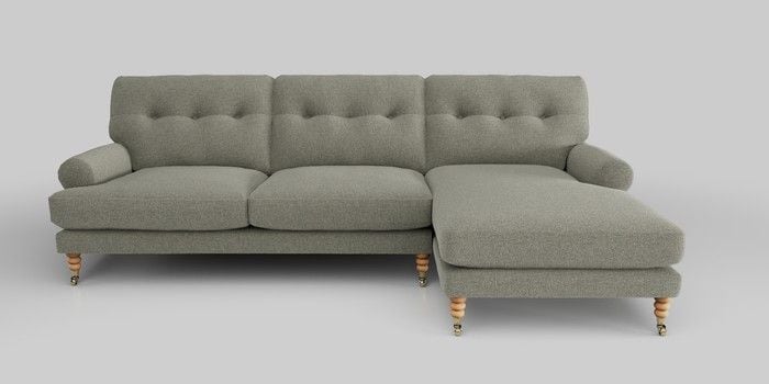 6.12.1 Buy Erin Buttoned Back Deep Relaxed Sit Medium Sofa Chaise - Right Hand Chunky Marl Light Olive Green High Classic Turned Brass Castor - Light from the Laura Ashley online shop Click here to use our website with more accessibility support, for example screen readers