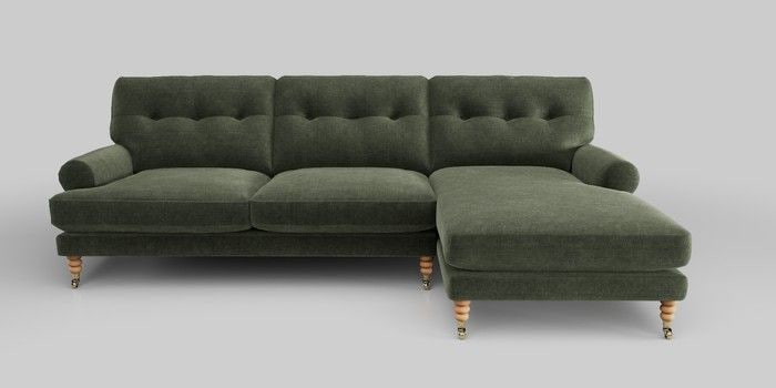 7.0.3 Buy Erin Buttoned Back Deep Relaxed Sit Medium Sofa Chaise - Right Hand Luxe Chenille Mid Green High Classic Turned Brass Castor - Light from the Laura Ashley online shop Click here to use our website with more accessibility support, for example screen readers