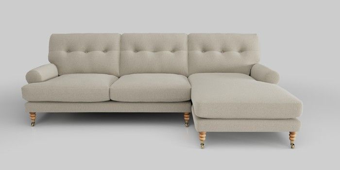 6.12.1 Buy Erin Buttoned Back Deep Relaxed Sit Medium Sofa Chaise - Right Hand Ripple Chenille Light Natural High Classic Turned Brass Castor - Light from the Laura Ashley online shop Click here to use our website with more accessibility support, for example screen readers