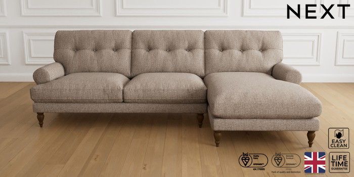 6.12.1 Buy Erin Buttoned Back Deep Relaxed Sit Medium Sofa Chaise - Right Hand Tweedy Blend Easy Clean Light Dove Natural High Classic Turned - Mid from the Laura Ashley online shop Click here to use our website with more accessibility support, for example screen readers