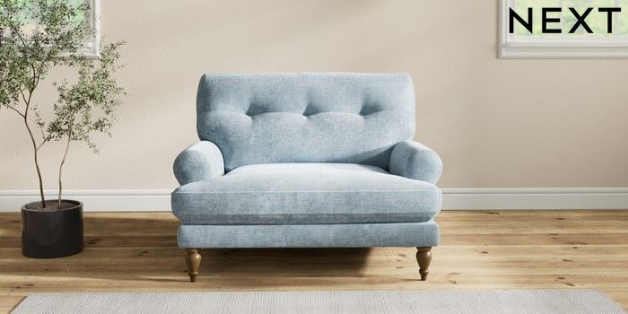 7.2.6 Buy Erin Buttoned Back Deep Relaxed Sit Snuggle Plush Chenille Light Blue High Classic Turned - Mid from the Laura Ashley online shop Click here to use our website with more accessibility support, for example screen readers