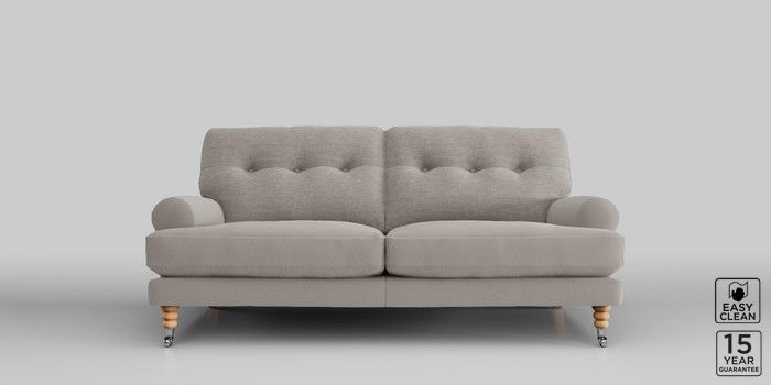 Elevate your living space with the Erin Button Back Sofa. Its elegant scroll arms and charming button-back cushions give it a timeless look. You'll love the comfortable "Firmer Sit" cushions, specially designed with a high-density foam core and soft toppers for ultimate support and durability. These low-maintenance cushions hold their shape beautifully and are reversible too—just a quick flip and plump will keep them looking their best. Make the Erin uniquely yours by choosing from a huge range of coloured fabrics.
