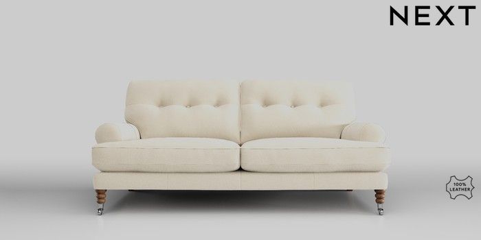 6.11.8 Buy Erin Buttoned Back Leather Deep Sit 3 Seater Small Sofa Turin Leather Cream High Classic Turned Chrome Castor - Mid from the Laura Ashley online shop Click here to use our website with more accessibility support, for example screen readers