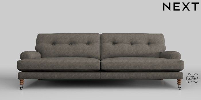 6.11.8 Buy Erin Buttoned Back Leather Deep Sit 4 Seater Large Sofa Antiqued Leather Grey High Classic Turned Chrome Castor - Mid from the Laura Ashley online shop Click here to use our website with more accessibility support, for example screen readers