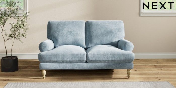 7.2.6 Buy Erin Deep Relaxed Sit 2 Seater Small Sofa Plush Chenille Light Blue High Classic Turned - Light from the Laura Ashley online shop Click here to use our website with more accessibility support, for example screen readers