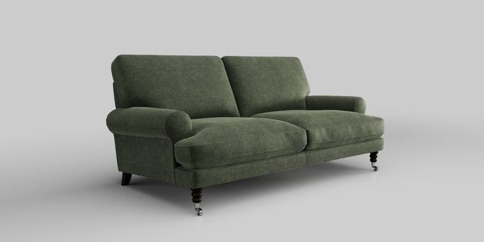 6.12.1 Buy Erin Deep Relaxed Sit 3 Seater Small Sofa Luxe Chenille Mid Green High Classic Turned Chrome Castor - Dark from the Laura Ashley online shop Click here to use our website with more accessibility support, for example screen readers