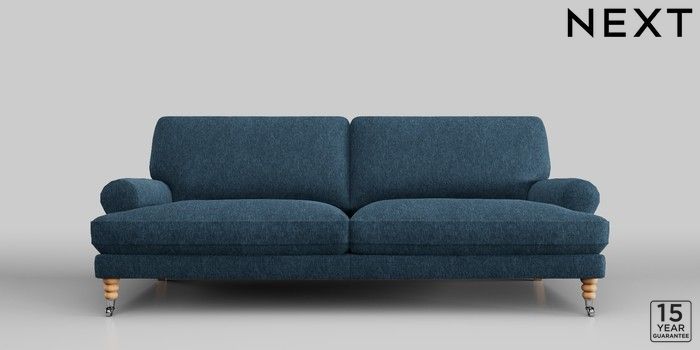 6.12.1 Buy Erin Deep Relaxed Sit 3 Seater Sofa Cotswold Chenille Dark Blue High Classic Turned Chrome Castor - Light from the Laura Ashley online shop Click here to use our website with more accessibility support, for example screen readers