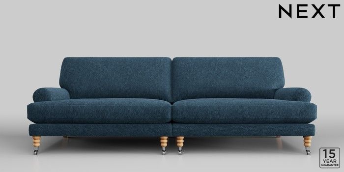 6.12.1 Buy Erin Deep Relaxed Sit 4 Seater Large Sofa Cotswold Chenille Dark Blue High Classic Turned Chrome Castor - Light from the Laura Ashley online shop Click here to use our website with more accessibility support, for example screen readers