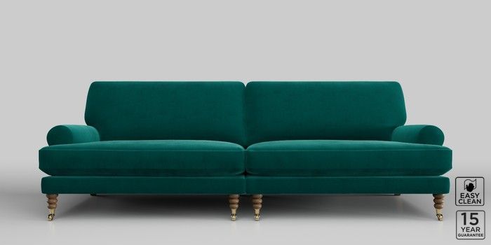 6.11.8 Buy Erin Deep Relaxed Sit 4 Seater Large Sofa Plush Velvet Easy Clean Juniper Green High Classic Turned Brass Castor - Dark from the Laura Ashley online shop Click here to use our website with more accessibility support, for example screen readers