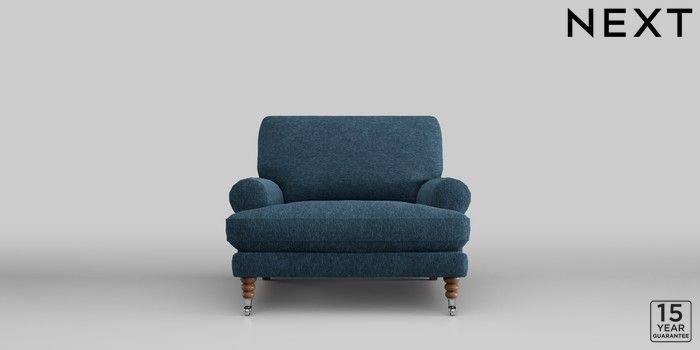 6.12.13 Buy Erin Deep Relaxed Sit Armchair Cotswold Chenille Dark Blue High Classic Turned Chrome Castor - Mid from the Laura Ashley online shop Click here to use our website with more accessibility support, for example screen readers