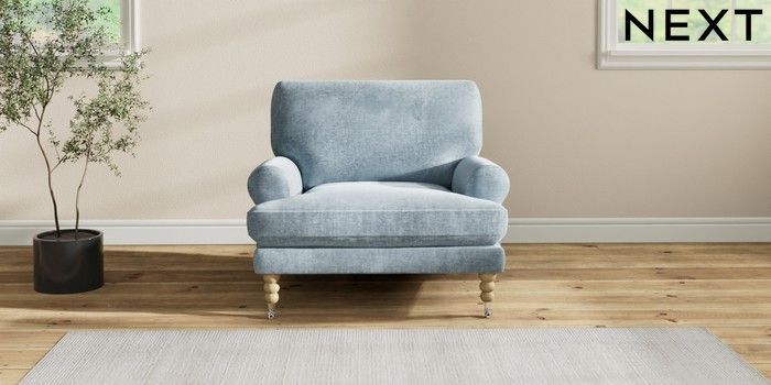7.2.6 Buy Erin Deep Relaxed Sit Armchair Plush Chenille Light Blue High Classic Turned Chrome Castor - Light from the Laura Ashley online shop Click here to use our website with more accessibility support, for example screen readers