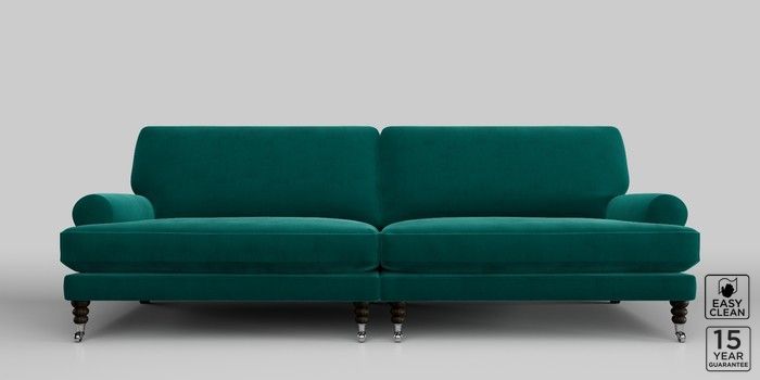 6.12.1 Buy Erin Deep Relaxed Sit 4 Seater Large Sofa Plush Velvet Easy Clean Juniper Green High Classic Turned Chrome Castor - Dark from the Laura Ashley online shop Click here to use our website with more accessibility support, for example screen readers