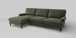 6.12.1 Buy Erin Deep Relaxed Sit Medium Sofa Chaise - Left Hand Luxe Chenille Mid Green High Classic Turned Chrome Castor - Dark from the Laura Ashley online shop Click here to use our website with more accessibility support, for example screen readers
