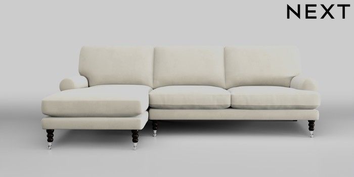 7.0.3 Buy Erin Deep Relaxed Sit Medium Sofa Chaise - Left Hand Luxe Chenille Oyster High Classic Turned Chrome Castor - Dark from the Laura Ashley online shop Click here to use our website with more accessibility support, for example screen readers