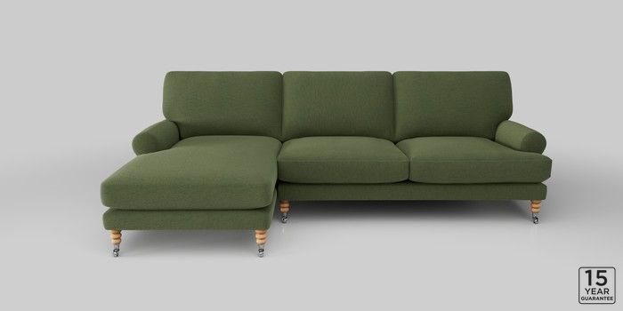 6.12.1 Buy Erin Deep Relaxed Sit Medium Sofa Chaise - Left Hand Ripple Chenille Mid Moss Green High Classic Turned Chrome Castor - Light from the Laura Ashley online shop Click here to use our website with more accessibility support, for example screen readers