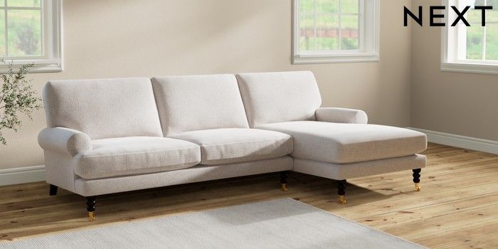 7.2.6 Buy Erin Deep Relaxed Sit Medium Sofa Chaise - Right Hand Multi Weave Oyster High Classic Turned Brass Castor - Dark from the Laura Ashley online shop Click here to use our website with more accessibility support, for example screen readers