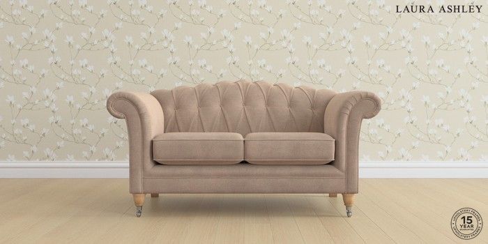6.12.1 Buy Gloucester Button Back by Laura Ashley 2 Seater Small Sofa Ailsworth Mink Natural Low Chrome Castor - Light Oak from the Laura Ashley online shop Click here to use our website with more accessibility support, for example screen readers