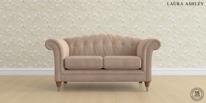 6.12.1 Buy Gloucester Button Back by Laura Ashley 2 Seater Small Sofa Ailsworth Mink Natural Low Chrome Castor - Teak from the Laura Ashley online shop Click here to use our website with more accessibility support, for example screen readers