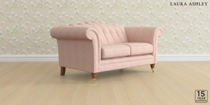 6.12.1 Buy Gloucester Button Back by Laura Ashley 2 Seater Small Sofa Edwin Chenille Blush Pink Low Brass Castor - Teak from the Laura Ashley online shop Click here to use our website with more accessibility support, for example screen readers