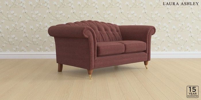 6.12.1 Buy Gloucester Button Back by Laura Ashley 2 Seater Small Sofa Edwin Chenille Burgundy Red Low Brass Castor - Teak from the Laura Ashley online shop Click here to use our website with more accessibility support, for example screen readers