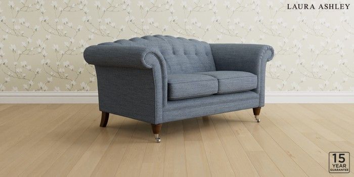 6.12.1 Buy Gloucester Button Back by Laura Ashley 2 Seater Small Sofa Harley Seaspray Blue Low Chrome Castor - Teak from the Laura Ashley online shop Click here to use our website with more accessibility support, for example screen readers