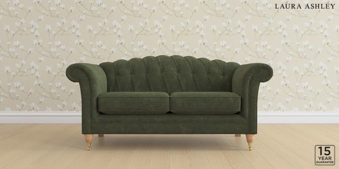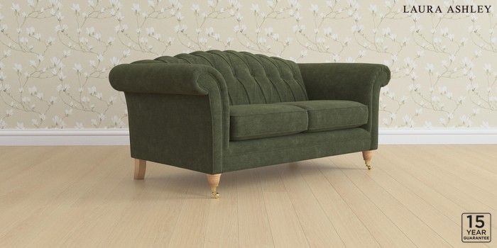 6.12.13 Buy Gloucester Button Back by Laura Ashley 2 Seater Sofa Alwyn Velvet Ivy Green Low Brass Castor - Light Oak from the Laura Ashley online shop Click here to use our website with more accessibility support, for example screen readers