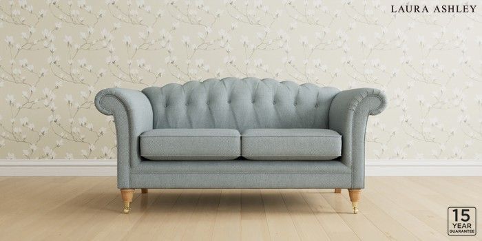 7.0.3 Buy Gloucester Button Back by Laura Ashley 2 Seater Sofa Anneliese Seaspray Blue Low Brass Castor - Light Oak from the Laura Ashley online shop Click here to use our website with more accessibility support, for example screen readers