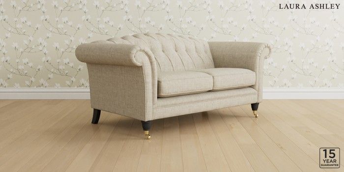 6.12.13 Buy Gloucester Button Back by Laura Ashley 2 Seater Sofa Bainton Natural Low Brass Castor - Black from the Laura Ashley online shop Click here to use our website with more accessibility support, for example screen readers