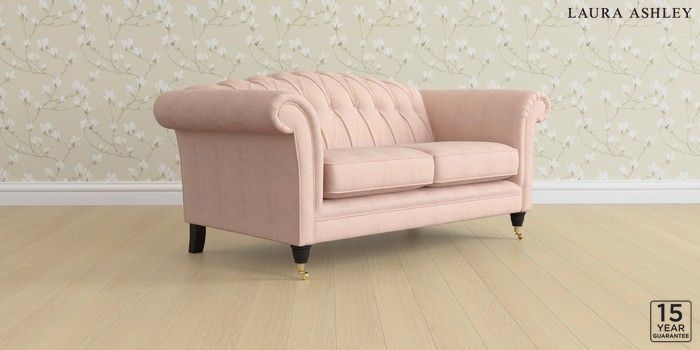 6.12.13 Buy Gloucester Button Back by Laura Ashley 2 Seater Sofa Edwin Chenille Blush Pink Low Brass Castor - Black from the Laura Ashley online shop Click here to use our website with more accessibility support, for example screen readers