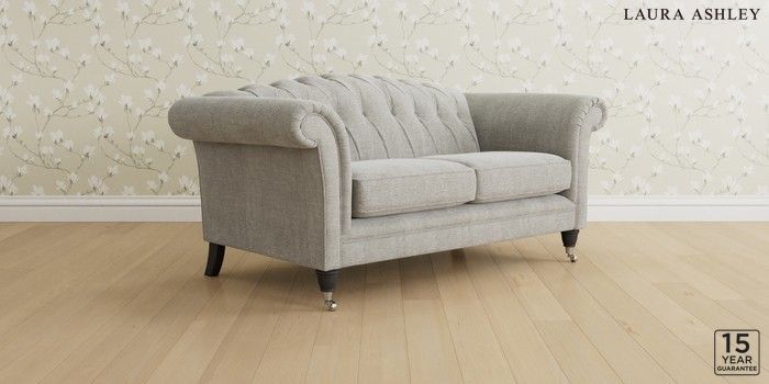 6.12.1 Buy Gloucester Button Back by Laura Ashley 2 Seater Sofa Edwin Chenille Silver Grey Low Chrome Castor - Black from the Laura Ashley online shop Click here to use our website with more accessibility support, for example screen readers