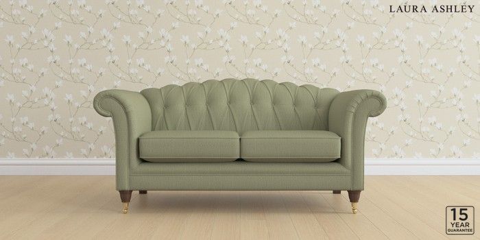 6.12.1 Buy Gloucester Button Back by Laura Ashley 2 Seater Sofa Edwin Herringbone Hedgerow Green Low Brass Castor - Chestnut from the Laura Ashley online shop Click here to use our website with more accessibility support, for example screen readers