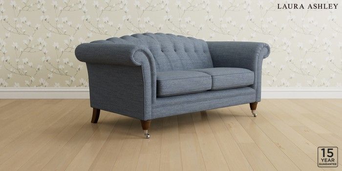 6.12.1 Buy Gloucester Button Back by Laura Ashley 2 Seater Sofa Harley Seaspray Blue Low Chrome Castor - Teak from the Laura Ashley online shop Click here to use our website with more accessibility support, for example screen readers