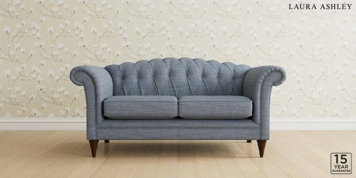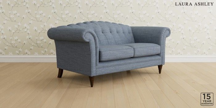 6.12.1 Buy Gloucester Button Back by Laura Ashley 2 Seater Sofa Harley Seaspray Blue Low Turned - Chestnut from the Laura Ashley online shop Click here to use our website with more accessibility support, for example screen readers