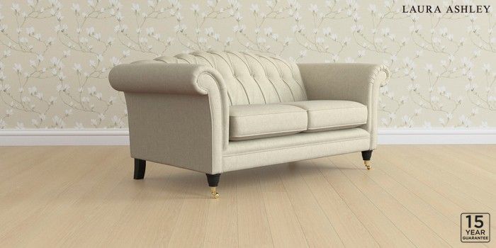 6.12.13 Buy Gloucester Button Back by Laura Ashley 2 Seater Sofa Kinsham Natural Low Brass Castor - Black from the Laura Ashley online shop Click here to use our website with more accessibility support, for example screen readers