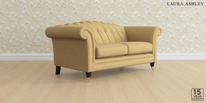 6.12.13 Buy Gloucester Button Back by Laura Ashley 2 Seater Sofa Kinsham Ochre Yellow Low Brass Castor - Black from the Laura Ashley online shop Click here to use our website with more accessibility support, for example screen readers