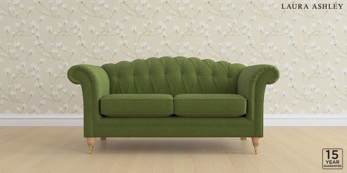6.12.13 Buy Gloucester Button Back by Laura Ashley 2 Seater Sofa Tichwell Olive Green Low Brass Castor - Light Oak from the Laura Ashley online shop Click here to use our website with more accessibility support, for example screen readers