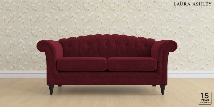 6.12.1 Buy Gloucester Button Back by Laura Ashley 3 Seater Small Sofa Alwyn Velvet Burgundy Red Low Turned - Black from the Laura Ashley online shop Click here to use our website with more accessibility support, for example screen readers