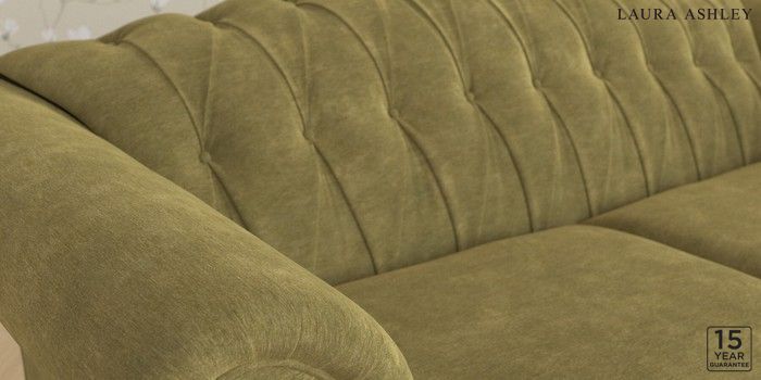 6.12.1 Buy Gloucester Button Back by Laura Ashley 3 Seater Small Sofa Alwyn Velvet Olive Green Low Chrome Castor - Light Oak from the Laura Ashley online shop Click here to use our website with more accessibility support, for example screen readers