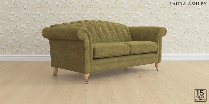 6.12.13 Buy Gloucester Button Back by Laura Ashley 3 Seater Small Sofa Alwyn Velvet Olive Green Low Chrome Castor - Light Oak from the Laura Ashley online shop Click here to use our website with more accessibility support, for example screen readers