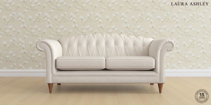 7.2.6 Buy Gloucester Button Back by Laura Ashley 3 Seater Small Sofa Anneliese Oyster Natural Low Turned - Teak from the Laura Ashley online shop Click here to use our website with more accessibility support, for example screen readers