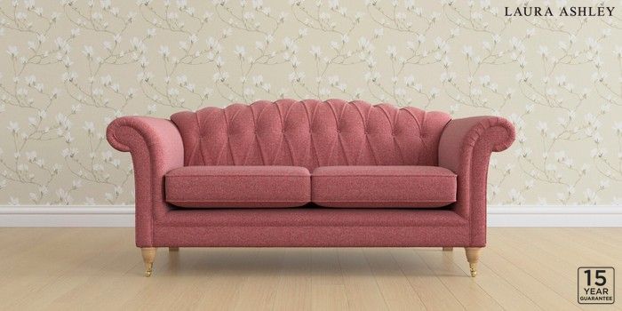 6.12.1 Buy Gloucester Button Back by Laura Ashley 3 Seater Small Sofa Anneliese Rosewood Red Low Brass Castor - Light Oak from the Laura Ashley online shop Click here to use our website with more accessibility support, for example screen readers