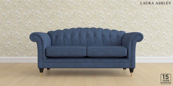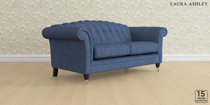 6.12.13 Buy Gloucester Button Back by Laura Ashley 3 Seater Small Sofa Bainton Midnight Navy Low Brass Castor - Black from the Laura Ashley online shop Click here to use our website with more accessibility support, for example screen readers