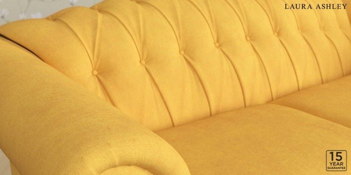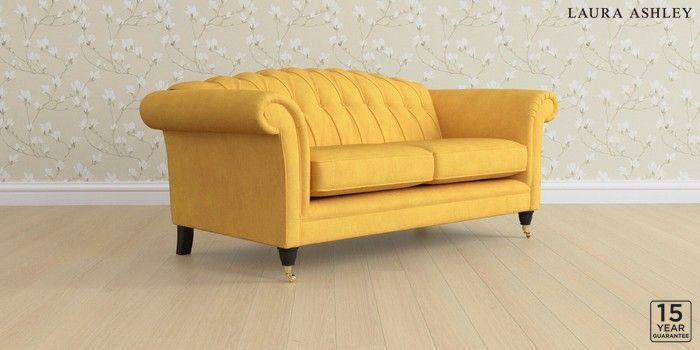 6.12.13 Buy Gloucester Button Back by Laura Ashley 3 Seater Small Sofa Bainton Ochre Yellow Low Brass Castor - Black from the Laura Ashley online shop Click here to use our website with more accessibility support, for example screen readers