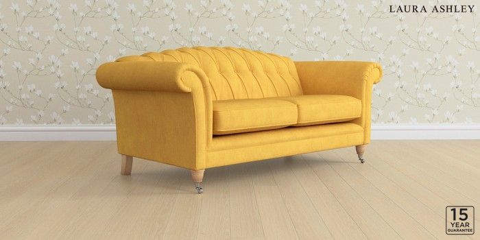 6.12.13 Buy Gloucester Button Back by Laura Ashley 3 Seater Small Sofa Bainton Ochre Yellow Low Chrome Castor - Light Oak from the Laura Ashley online shop Click here to use our website with more accessibility support, for example screen readers