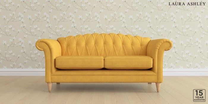 6.12.13 Buy Gloucester Button Back by Laura Ashley 3 Seater Small Sofa Bainton Ochre Yellow Low Turned - Light Oak from the Laura Ashley online shop Click here to use our website with more accessibility support, for example screen readers