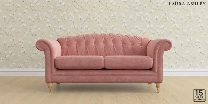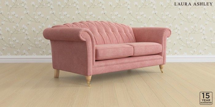 6.12.1 Buy Gloucester Button Back by Laura Ashley 3 Seater Small Sofa Bainton Old Rose Pink Low Brass Castor - Light Oak from the Laura Ashley online shop Click here to use our website with more accessibility support, for example screen readers