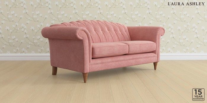 6.12.1 Buy Gloucester Button Back by Laura Ashley 3 Seater Small Sofa Bainton Old Rose Pink Low Turned - Teak from the Laura Ashley online shop Click here to use our website with more accessibility support, for example screen readers