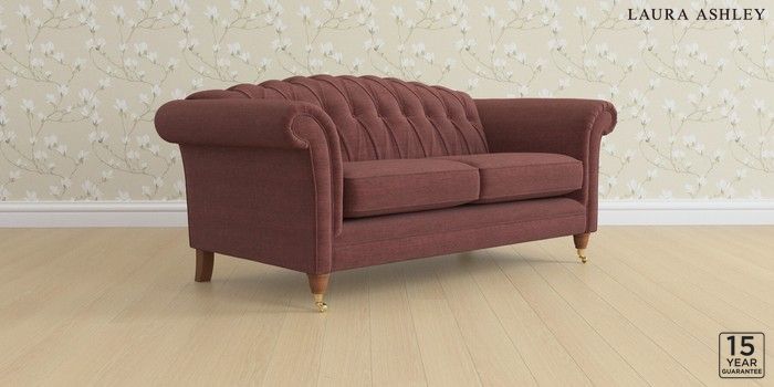 6.12.1 Buy Gloucester Button Back by Laura Ashley 3 Seater Small Sofa Edwin Chenille Burgundy Red Low Brass Castor - Teak from the Laura Ashley online shop Click here to use our website with more accessibility support, for example screen readers