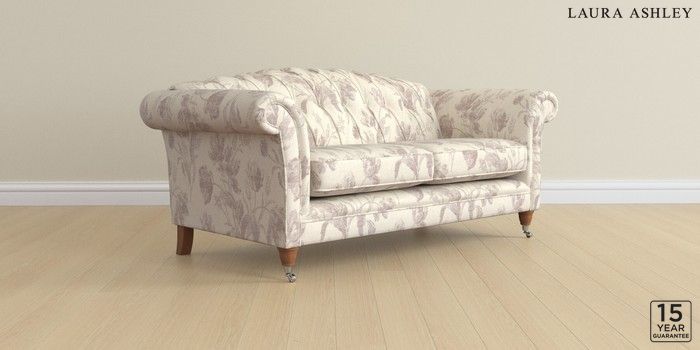 6.12.1 Buy Gloucester Button Back by Laura Ashley 3 Seater Small Sofa Gosford Weave Dusky Plum Purple Low Chrome Castor - Teak from the Laura Ashley online shop Click here to use our website with more accessibility support, for example screen readers