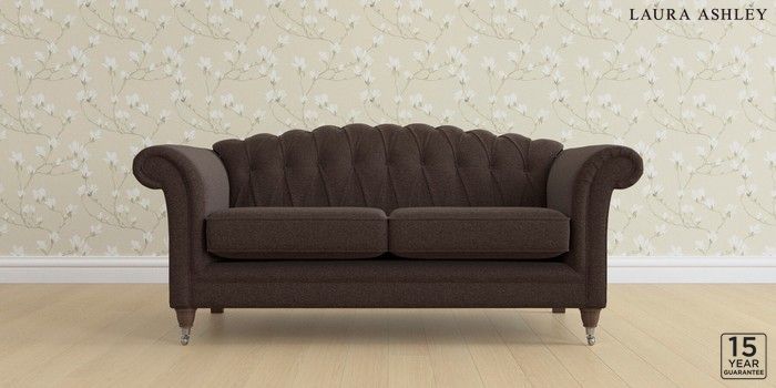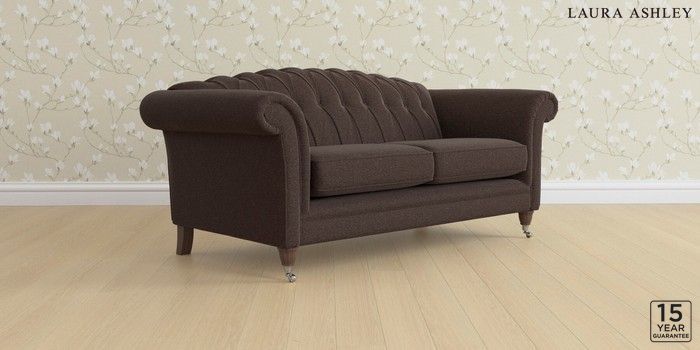 7.0.3 Buy Gloucester Button Back by Laura Ashley 3 Seater Small Sofa Harley Chestnut Brown Low Chrome Castor - Chestnut from the Laura Ashley online shop Click here to use our website with more accessibility support, for example screen readers
